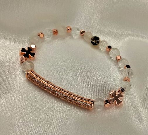 Clear Quartz w/ rose gold tube connector Bracelet