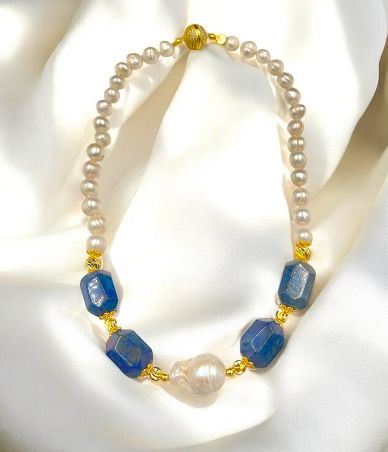 Pearl w/ Lapis Lazuli Short Necklace
